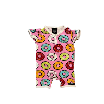 Villervalla shortsihaalari hauskalla donitsikuviolla. Edessä ja haarassa pukemista helpottavat painonapit.